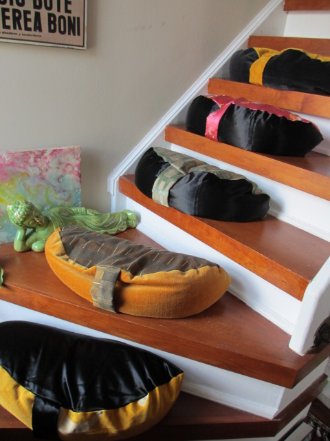 Perhaps the title of this post contrasts with the real precepts of the Dhamma way. After all, we don’t want to spend too much resting time in a tall, fluffy, cozy bed during a ten day sit. Neither would we want to sit too comfortably so as to produce a sleepy mind. Attachment is an act that binds us to this illusion we call life. However, in the seven plus years I’ve been practicing Vipassana, it has come to my attention the need to sit comfortably and at ease, thus creating Glory to the Sun Cushions. My home based sewing studio has evolved fortuitously into a Dhamma business.